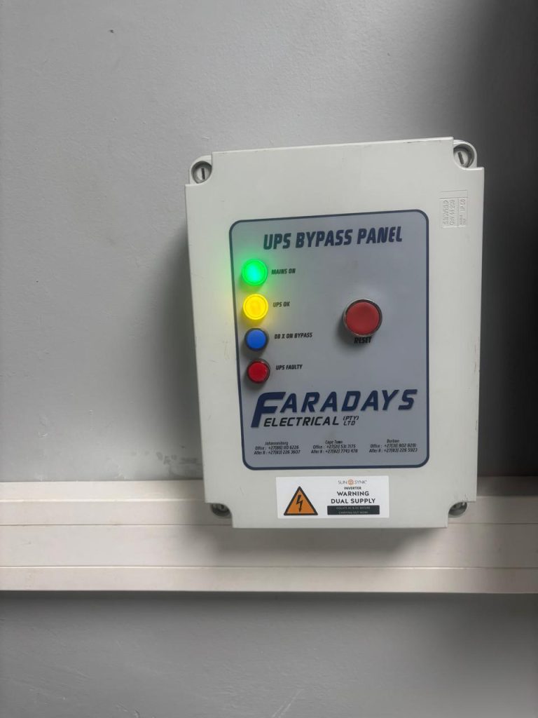 A standout moment of innovation came from field technician Brandon van der Westhuizen, who designed a new emergency change-over panel to bring the entire store onto backup power. Remarkably, this design was completed without an external electrical engineer—at the client’s request—demonstrating the owners’ trust in Faradays’ expertise.